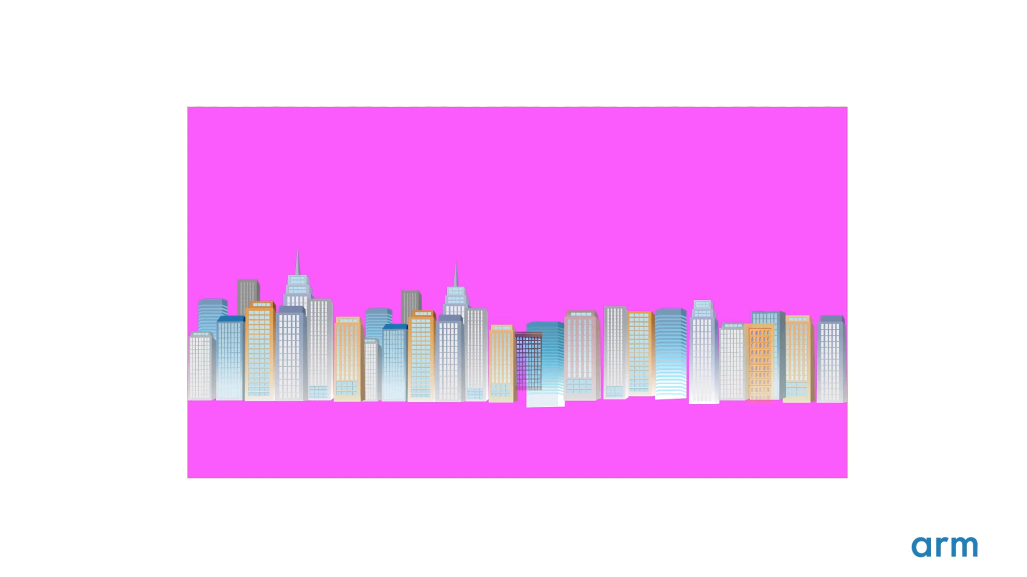 다시 레이어들 중 하나로 돌아가 보자. 각각의 빌딩과 투명한 창의 경계면이 부드러운 엣지로 처리되길 원하기 때문에, 블렌딩을 켠 상태로 레이어를 그려야 한다. 그러나 실제로는 레이어 대부분 영역이 불투명 - Opacity 1.0 의 값을 가진다.