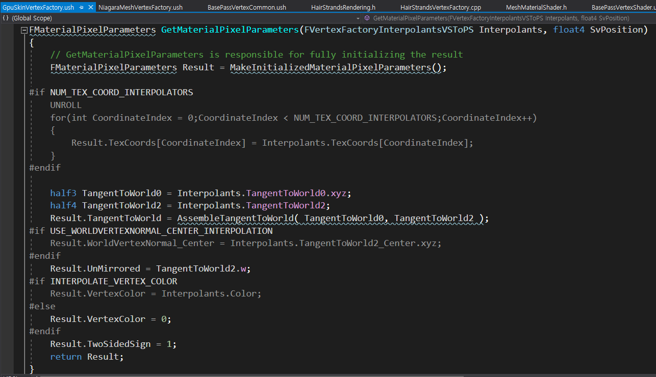 → 지금은 GetVertexFactoryIntermediates 부분은 존재하지않음... 대신